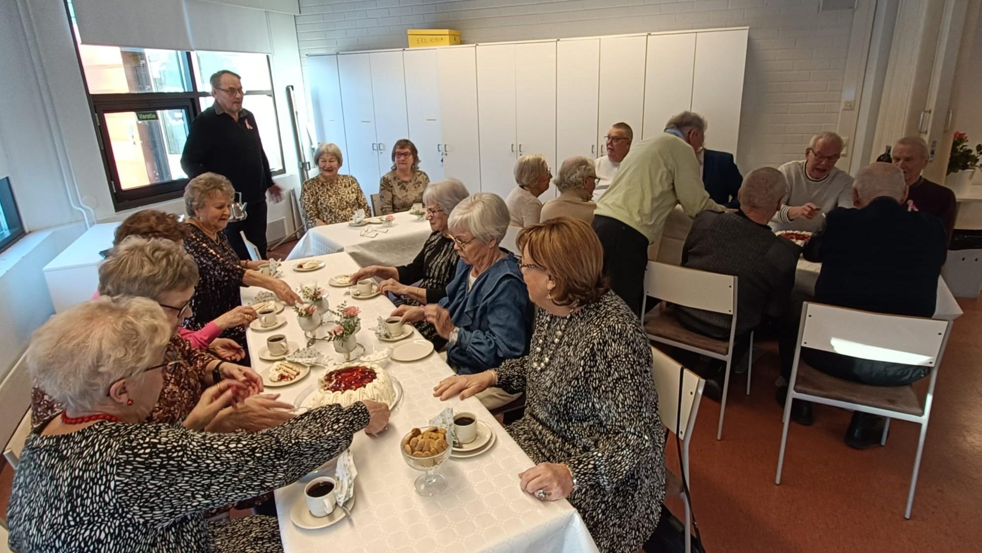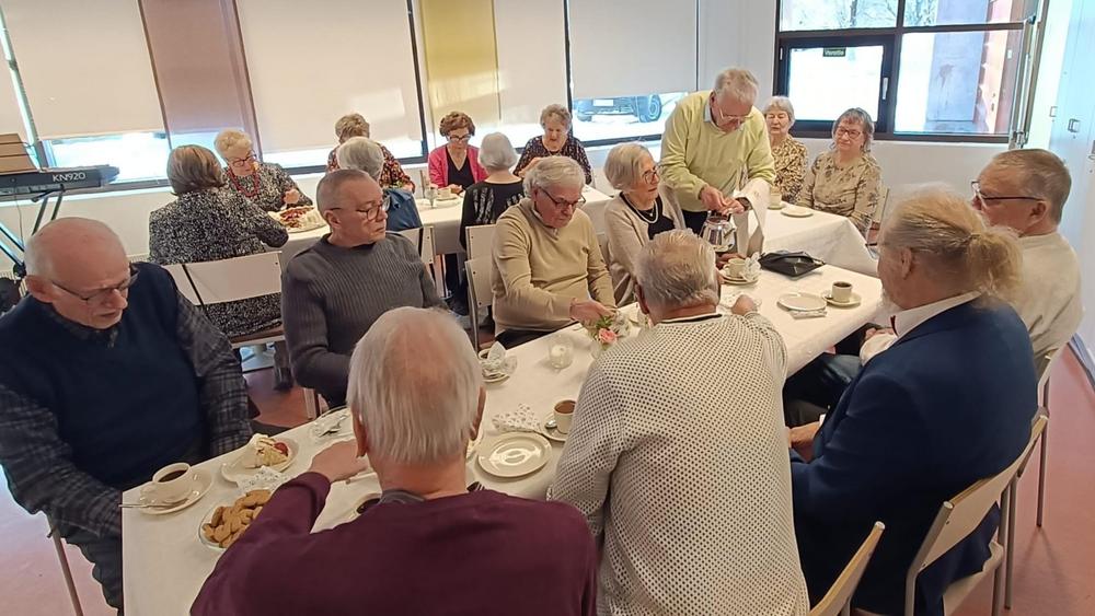 29.2.2026 Kahviteltiin vuonna 2025 merkkipäiviä viettäneiden yhteisillä kakkukahveilla.