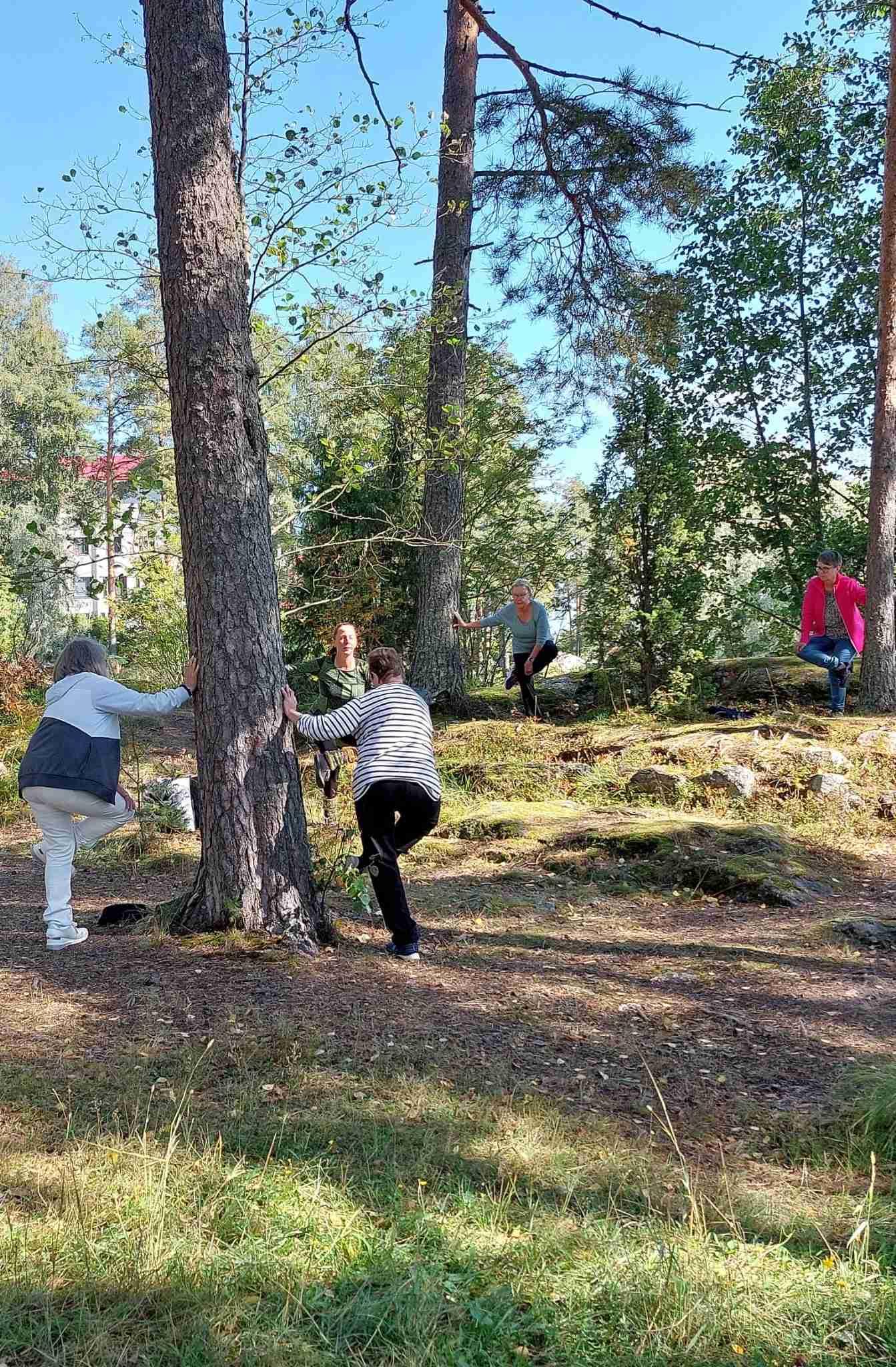 15.5. 2025 Kaupungin liikunnanohjaaja Eila Vanhala liittyi torstaitallaajien joukkoon, ja aamu aloitettiinkin lämmittelyjumpalla.